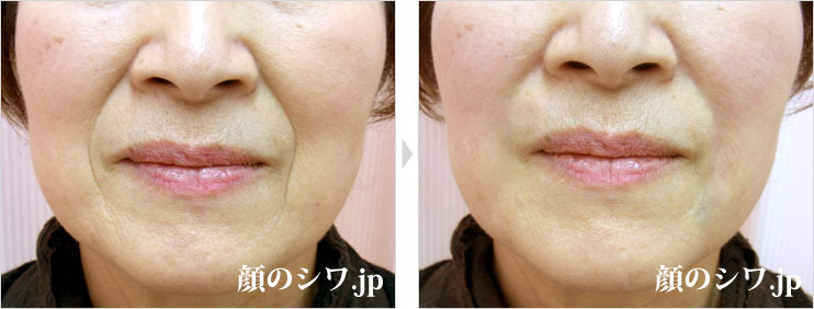 年齢とともに、顔のシワが深くなって老けて見えるのでヒアルロン酸注入を行った症例です。法令線のシワが深いために、老けこんだということを気にされていらっしゃいました。口周りのほうれい線に対し、ヒアルロン酸注入を行いました。短時間で肌の張りが良くなり、若返り効果を得ることができました。鼻から口廻り、特に法令線が深くなると、年齢より年上に見えるために、多数のご相談をいただいております。深くなった顔のシワは、ヒアルロン酸注入で、浅くすることが可能です。ヒアルロン酸注入は、多くの場合ほとんど腫れませんので、非常に手軽であるということで喜ばれています。